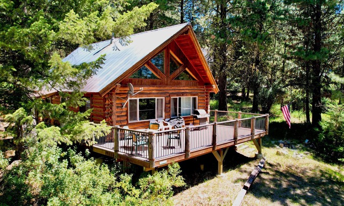 Blumisalp ~ Quintessential Idaho Log Cabin - Wifi - Trailer parking - Fire pit - Wood stove is located in Cascade. Blumisalp ~ Quintessential Idaho Log Cabin - Wifi - Trailer parking - Fire pit - Wood stove provides accommodation, featuring Barbecue/Outdoor Cooking, Kitchen, Parking, among other amenities. This House features Barbecue/Outdoor Cooking, Kitchen, Parking, to make your stay a comfortable one.