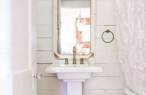 - Second Bath: shower/claw-foot tub combo, single vanity