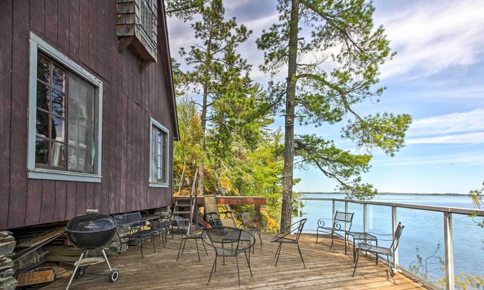 Hop aboard a boat and venture to the secluded 3-bedroom, 1-bath vacation rental cabin in Stop Island near International Falls! This rustic retreat boasts a furnished deck, a wood-burning fireplace, a boat dock, and a sandy beach. Go island hopping by canoe, fish for bass on-site, and finish the day by watching the Northern Lights from the comfort of the front deck! Book your extended stay now!