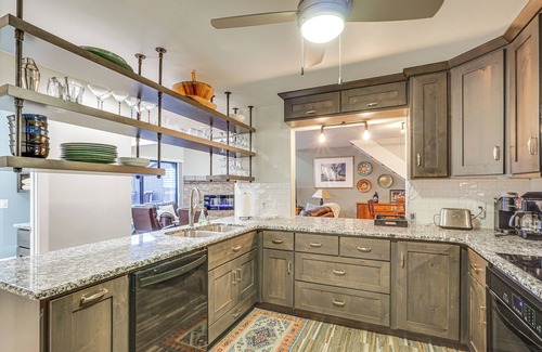 KITCHEN: Cooking basics, Keurig & drip coffee makers, dishwasher, stove/oven, refrigerator, microwave, blender, Crockpot, toaster, hand mixer, wine glasses, dishware & flatware