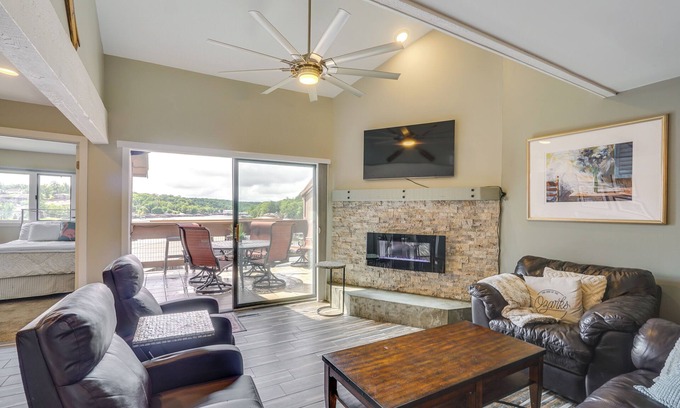 Leave your worries at home and head to Osage Beach for a lakefront getaway! This 2-bedroom, 2-bath vacation rental condo is located in The Knolls Resort community and offers a plethora of amenities including an on-site boat slip and launch, indoor and outdoor pools, and a fitness center. When you're not out on the water, enjoy panoramic lake views from the privacy of the rooftop deck while savoring a delicious dinner. Don't wait to book your next outdoor vacation in the Ozarks!