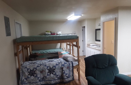 This property sleeps up to 8 guests and use of the many amenities across the campground is included. We also offer special services like Grocery Pick-up and Fuel for your ATV. We have a stocked pond, kayaks, canoes, playground, 18 hole putt putt golf course and numerous other outdoor games across the grounds. The ATV trails are within 1/4mile from your front door as well as many other attractions around the area.