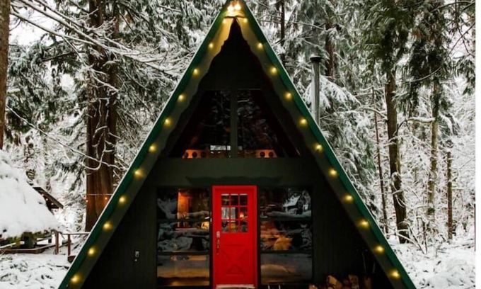 Bobo's Bungalow is a picture-perfect A-frame cabin located 2 minutes from the entrance to Mt. Rainier National Park.