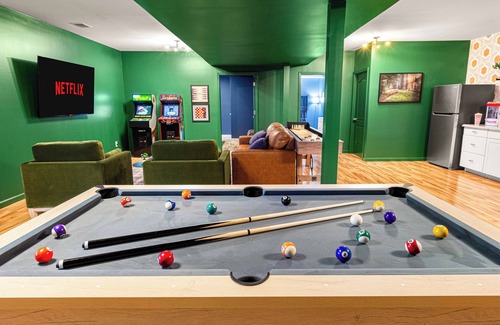 ❊Pool Table, 8-person poker table, Shuffleboard, 75in Smart TV, Popcorn Machine