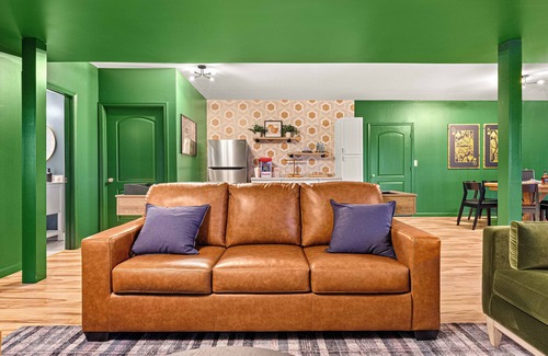 ✦Queen Size sleeper sofa: fitted with a memory foam mattress, located in the game room in front of the 75in TV. Provides additional sleeping capacity for guests.