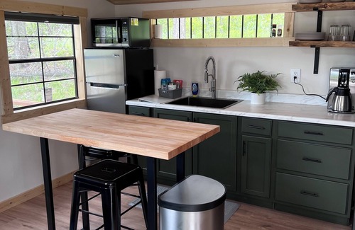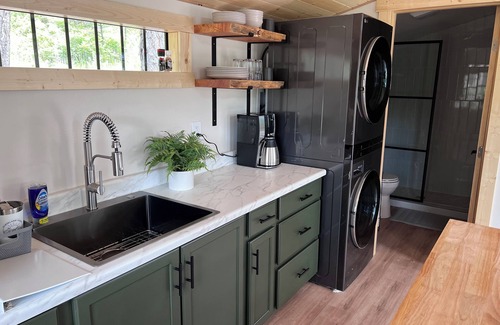 Welcome to Bode's Bunkie – a tiny slice of heaven with mountain views and private lake access on beautiful Koocanusa. Sitting on the north side of our property, our stylish new tiny house offers everything you need for a memorable getaway. This tiny packs a big punch, with amenities including outdoor living space, a kitchen and beautiful bathroom, stacked washer/dryer, outdoor barbecue/grill, fire pit, air conditioning, and more. We can't wait to welcome you into our stylish retreat!