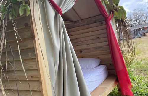 While you're here, you can enjoy all the comforts of home and more, including an outdoor entertainment area and a detached shared bathroom, as well as a garden and a firepit. Other amenities include a mini-fridge and a picnic area.