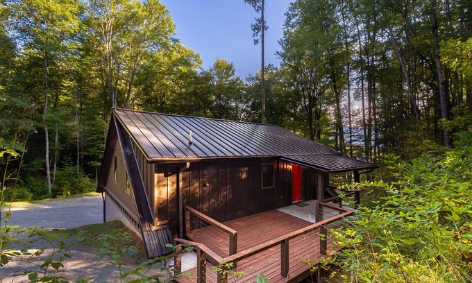 Boggs Hollow sits above a 4 car garage, just off the main road for Thomas Divide separated by a small section of forest. To the right of the building is a gentle slope leading up to the entrance of the deck on the back of the building. The wide deck has a gas grill and Adirondack chairs to enjoy the fresh mountain air and forest view. The entrance to Boggs Hollow is at the far end of the deck.