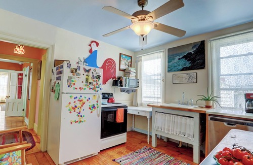 LIGHT, AIRY 2ND FLOOR OF A FEDERAL-PERIOD HOME ON A PEACEFUL STREET. WALK TO THE CENTER OF TOWN IN UNDER A MINUTE. EXHUBERANTLY COLORFUL DECOR, VIBRANT ART & AN IRRESISTIBLE BOOK-LINED "LIBRARYETTE" TO CURL UP IN. GOLDILOCKS-APPROVED BEDS, FULL KITCHEN, WI-FI, BUDDHA GARDEN WITH BBQ.