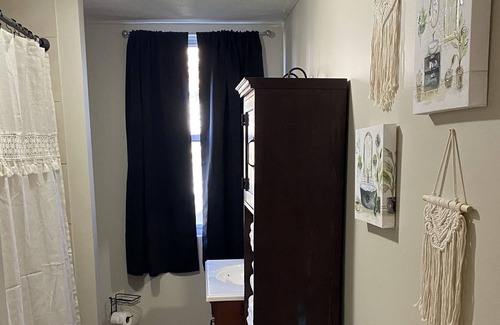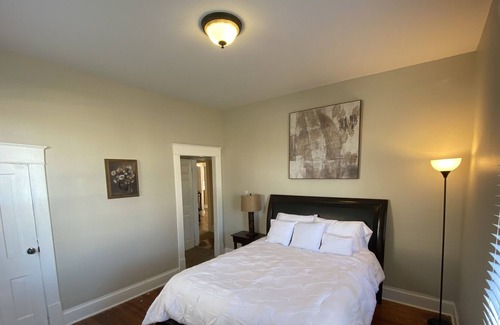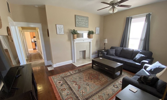 Enjoy this boho beauty getaway with high ceilings, original hardwood, and beautiful architecture. You’ll find 2 large bedrooms with queen size beds, a dining room with laundry area, a spacious bathroom, designated work space, and cozy living room. Out on the patio, you’ll find outdoor dining or relaxing space. Conveniently located 7 minutes from KDMC, 13 minutes from HTS airport, and 20 minutes to Cabell Huntington Hospital.