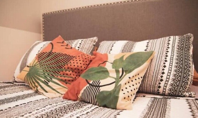 Our home sleeps 6 people—Bedroom 1 (Good Vibes) is equipped with a half bath, Queen size bed, closet, and charging side table. Bedroom 2 (Vintage Chic) is equipped with a Queen size bed, closet, smart tv, and side tables w/ charging lamps. Bedroom 3 (Hustle & Flow) is equipped with a Full size bed, smart tv, work desk and closet. Pack and play is available for small child by request.