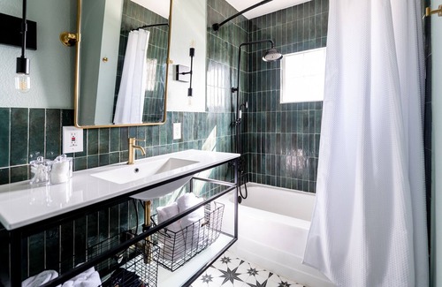 Boho Carriage House accommodates up to 4 guests with 1 bedroom, full bath, living room, and fully equipped kitchen. The living room couch folds out into an additional bed with a provided mattress topper as well as a blow-up queen-size mattress for additional guest. We provide "all the things" to make your stay comfortable from a full-length mirror to personal fans for each guest. Your kitchen is brand new and fully stocked with everything needed to prepare full meals including the original and recently restored cast iron kitchen sink and vintage inspired fridge. Coffee maker is a Keurig! Relax after a long day of antiquing in our restored original cast iron tub. Boho Carriage House offers a fun vibe with unique decor and and photo wall complete with neon sign. She is a smart home with automated locks, hi speed wifi, flat screen tv's with streaming services, Nest thermostat, brand new central heating and air, and freshly renovated bathroom and kitchen.