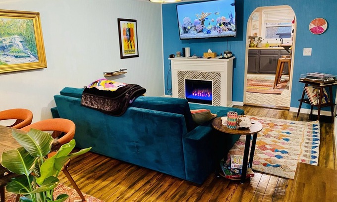Boho-Chic Travel Pad Unit 2: Fireplace, Fun & Convenient | Apartment in Bloomington