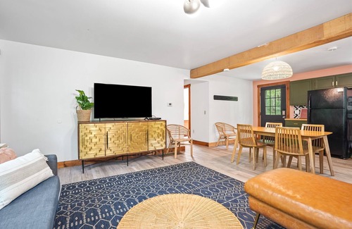 A boho-themed cabin nestled in the woods on a quiet, 2.7 acres is the perfect relaxing retreat after hiking and exploring.
