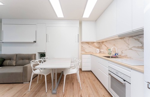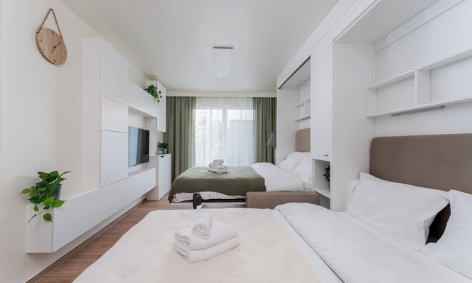 Bohomolca Chic Studio with Garden is a cozy and stylishly furnished apartment, ideal for both short and long stays. The well-thought-out layout of the space includes a living room equipped with two comfortable double beds, a fully equipped kitchenette, a modern bathroom and a charming garden - a perfect place for morning coffee or evening relaxation in the fresh air.
