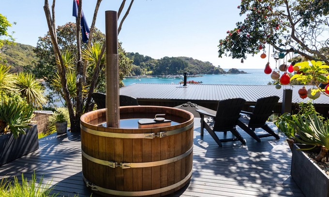 A waterfront paradise with the most incredible sea views, stunning sunsets and a boat mooring out front. Experience the beautiful native bird life in the privacy of the ultimate in al fresco living, with three large entertaining decks, a cedar hot tub and an outdoor fire/bbq/pizza oven, perfect for creating a haven for relaxation and socialising. Two private tracks leads you down to the water's edge where you can go paddle boarding and kayaking, exploring the crystal clear waters and fish life below. Relax on the sun loungers and immerse yourself in the culinary arts within this home, equipped with state of the art features and the designer kitchen and bathrooms in this premium coastal home. As the day transitions into night you will be captivated by our incredible starry night sky on the first Dark Sky Sanctuary Island in the world.