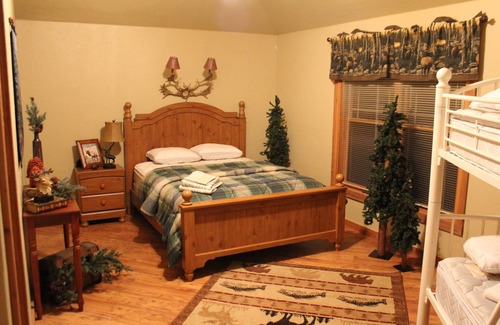 • 'Elk Room' upstairs = 1 queen bed, 1 bunk bed & full private bath (sleeps 4)