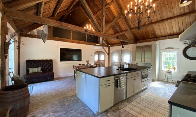 Professionally designed and appointed the Farmhouse was fully renovated to include air conditioning, radiant heat floor, ERV for fresh air, internet, wi-fi and in-wall sound system, gourmet kitchen and antique pumpkin pine floors that all make for a wonderful, cozy home.