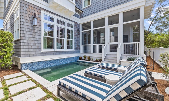 DETAILS: Discover the serenity of a seaside vacation at Yachtpond Lane, a 2-story home set in the heart of illustrious WaterSound. Sleeping up to 14 guests, there’s plenty of room for friends and family inside, with 6 bedrooms, 6.5 bathrooms, and multiple living areas. Days of sun-drenched fun exploring the sugar-white beaches and copious natural beauty, followed by lively evenings of dining and entertainment at The Big Chill await. Guests will love sipping their morning coffee on the lookout as the sun rises over the community, grilling on the built-in barbecue, and sunning by the picturesque private pool.