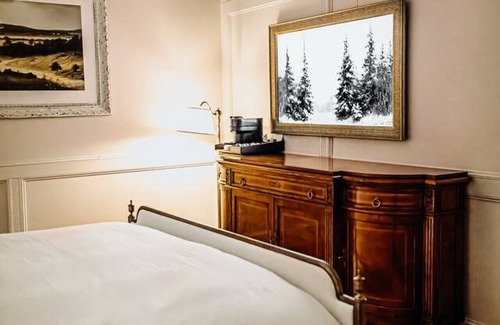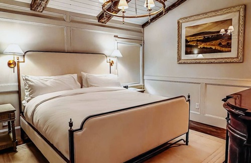 Bootleggers Lodge is one of Wisconsin’s edgiest fine dining experiences and - new in 2025 - guest lakeside Lodge. This listing is for Donna, one singular room inside of Bootleggers Lodge, a lakefront Lodge. A true classic. Elegantly styled with a brass accented cream linen King bed and beautiful Italian credenza, the traditional, white paneled room is sure to provide a delightfully calm and serene escape. Resting at the water’s edge of Lake Nokomis, Bootleggers Lodge is an iconic lakeside Lodge in Wisconsin. Paying respect to its heritage, the design and decor are inspired by its history. The remodel brings together elements of the era to create what would have been – and is today - a high end, elegantly beautiful vantage point from which to overlook Lake Nokomis and what truly is a quintessential American experience. After ascending the staircase to the second floor Lodge, guests are greeted by distressed barnwood flooring, hand hewn timbers, elegant paneling, dramatic wallpaper, grand chandeliers and vintage decor to invite you down the hallway to guest suites. In a nod to periods past, guests will find a beautiful haven with elegant marble bathrooms, inviting you to a relaxing and calm start to your day on the lake. Guests will be provided access to the suites through the use of secure wifi enabled locks. Unique, individualized codes to each locked door will be provided with a confirmed reservation. The staff at Bootleggers Lodge will accommodate any question to help guide you during your stay. Guests can reach out to us by email or phone call with any special requests that we will happily try to accommodate. The General Manager is available during stays to accommodate any questions from guests. During operating hours, guests can enjoy access to the restaurant below and lakeside views from the deck, as well as access to the public beachfront.