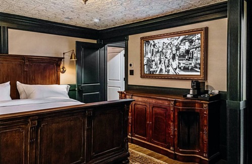 Bootleggers Lodge is one of Wisconsin’s edgiest fine dining experiences and - new in 2025 - guest lakeside Lodge. This listing is for Sofia, one singular room inside of Bootleggers Lodge, a lakefront Lodge. Refined and elegant. Grasscloth and bold, painted paneling, vintage golden frames and elegant sconces create a serene King size room to escape the madness of the day. Can be rented with Florence to create a double King escape that closes off from hallway with shared hall door. Resting at the water’s edge of Lake Nokomis, Bootleggers Lodge is an iconic lakeside Lodge in Wisconsin. Paying respect to its heritage, the design and decor are inspired by its history. The remodel brings together elements of the era to create what would have been – and is today - a high end, elegantly beautiful vantage point from which to overlook Lake Nokomis and what truly is a quintessential American experience. After ascending the staircase to the second floor Lodge, guests are greeted by distressed barnwood flooring, hand hewn timbers, elegant paneling, dramatic wallpaper, grand chandeliers and vintage decor to invite you down the hallway to guest suites. In a nod to periods past, guests will find a beautiful haven with elegant marble bathrooms, inviting you to a relaxing and calm start to your day on the lake. Guests will be provided access to the suites through the use of secure wifi enabled locks. Unique, individualized codes to each locked door will be provided with a confirmed reservation. The staff at Bootleggers Lodge will accommodate any question to help guide you during your stay. Guests can reach out to us by email or phone call with any special requests that we will happily try to accommodate. The General Manager is available during stays to accommodate any questions from guests. During operating hours, guests can enjoy access to the restaurant below and lakeside views from the deck, as well as access to the public beachfront.