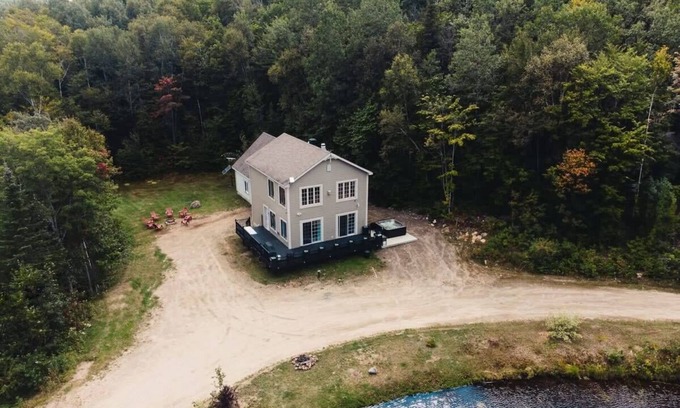 En choisissant notre chalet, vous aurez un accès exclusif à l'ensemble de la maison, au grand terrain extérieur, au lac et à la rive.