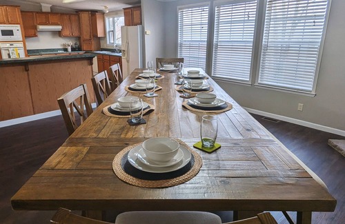 •Gather around the large dining table with mountain views & a wood-burning fireplace