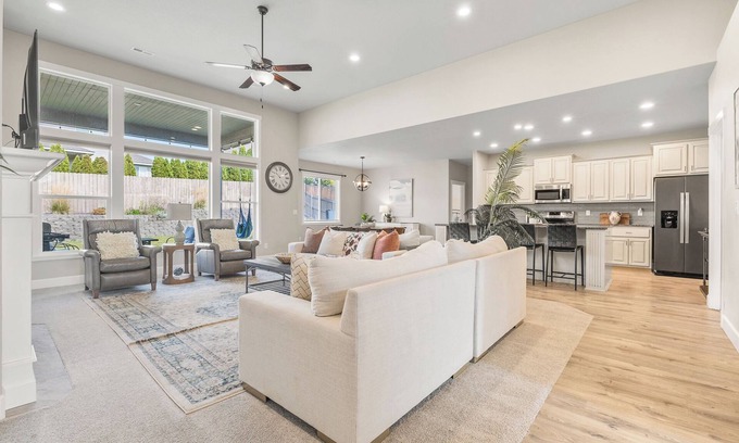 Experience ultimate relaxation at our family friendly 4-bedroom, 2-bath botanical retreat in Kennewick, Washington. Conveniently located 1 minute off the highway, our spacious haven boasts a fully stocked kitchen and a serene backyard all situated in a safe neighborhood. Explore local attractions and book your unforgettable escape today!