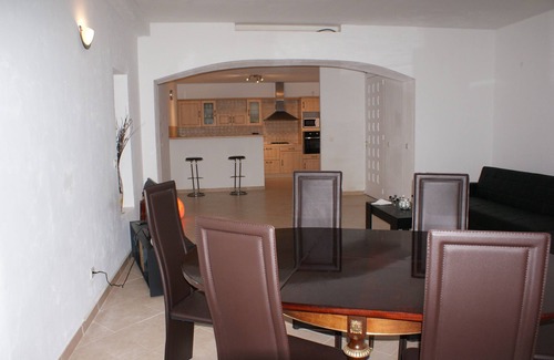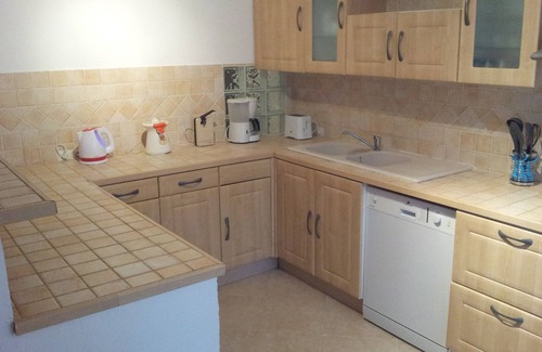 PIERREVERT, Provence Luberon, rent to rent large bottom of comfortable villa furnished with lounge dining room kitchen of 55 m2 fully equipped wifi with a big sofa bed and corner coffee table, TV, large table 8 chairs. Fully equipped kitchen with hob, oven, microwave oven, refrigerator with freezer three drawers, dishwasher and small electric household (coffee maker, toaster, electric kettle, juicer, can opener electrical, ...) and dishes for eight.
