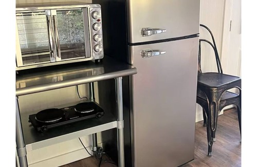 Enjoy the convenience of a hair dryer, heating, and AC during your stay. The oversized bathroom offers a shower and extra counter space and mirrors to get ready. The kitchenette offers a a medium size fridge, extra large toaster oven and a double burner for your cooking needs. There are pots/pans, dishes and cutlery stocked. Escape the hustle and bustle and unwind in this wonderful hideaway. We look forward to welcoming you to our place!