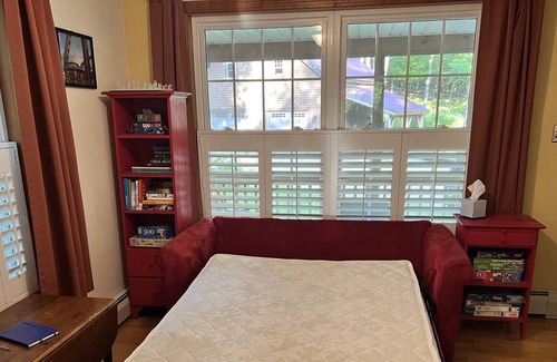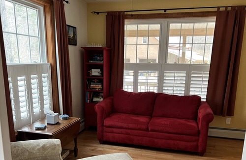 If staying during the summer we have air conditioning units in windows from June-August. There is one on the main level (dining room), master bedroom (king bed) and guest bedroom (queen bed).