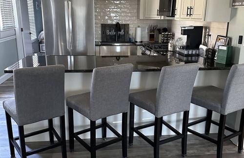Ideal for families, friends, or groups, this cozy getaway blends character with modern comfort, located just minutes from iconic bourbon distilleries and tasting experiences. Gather in the spacious living area filled with natural light, sink into comfy seating, and enjoy your favorite shows on the smart TV. The fully equipped kitchen makes mealtime easy, while the tranquil bedrooms with plush bedding provide the perfect setting for a peaceful night’s rest.