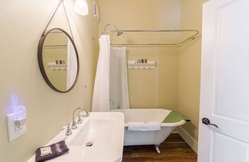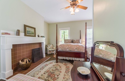 3 Bedroom Cottage includes a shared area/gathering room equipped with coffee/beverage station, microwave, mini-frig, wine cooler, and seating area (full-size couch, 2 recliners, table and 6 chairs). There is also a deck with umbrella table and 4 chairs overlooking a private back landscaped lawn with several Rose of Sharon bushes covered with beautiful purple blooms throughout summer. This is part of a historic B&B property with Pre-Civil War Greek Revival Mansion and an onsite Bourbon Bar and SPA Services. Full Country Breakfast is available (FOR AN ADDITIONAL COST OF $25/person) just steps away in the formal dining room of the Mansion. Beautiful, fenced park-like setting with fountains, patio with firepit, and park benches throughout grounds. Full Country Breakfast in the B&B Mansion is available for an additional $25/person fee, advance notice and payment is required. Bar is open to the public. SPA Services may be arranged. Visit www.bourbonmanor.com for more details and photos.