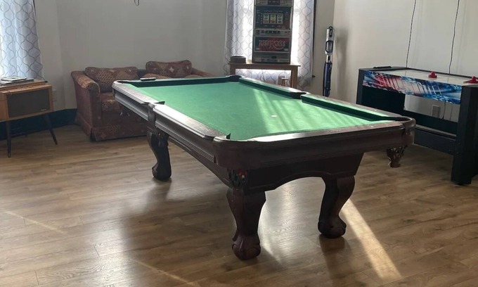 Large spacious rooms. Large formal dining room, living room, and a game room with a pool table, vintage slot machine & air hockey table. Each bedroom contains a king bed, sofa, clothing storage and flat screen TV. Full size laundry room and 2 bathrooms as well. All of the basics are covered so just show up and enjoy!