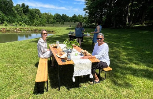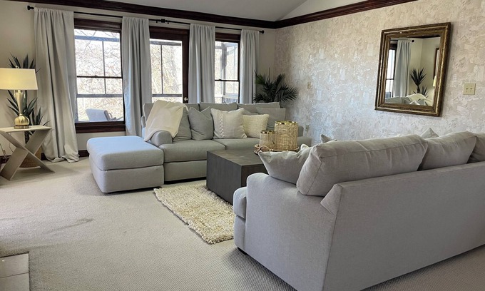 Options: 1. Rent Main house (2 floors): 7 guestrooms = 14 guests and have private access to the 20 acre property; includes use of pool, hot tub, & cabana (check for open dates), 1 mile trail wooded & hilled trail, bass fishing pond, fishing poles, dock, fitness center, 2 sunrooms, blackstone, grills, 2 firepits, & variety of soft seating areas in/outdoors.