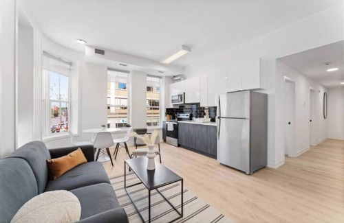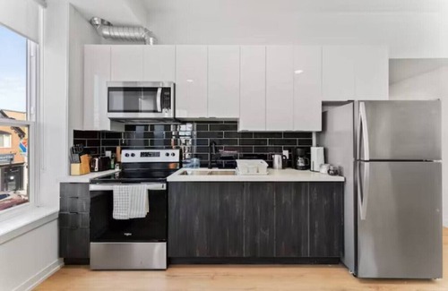 Experience this brand new boutique loft designed with functionality, style, and comfort in mind. This chick designer loft with high ceilings, bay windows, 2 bedrooms and a fully equipped kitchen and bathroom is perfect for short and long-term stays.