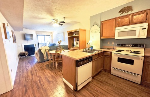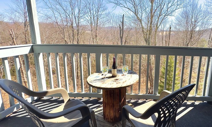 Simple and cute with everything you need for a quick weekend away. Fully equipped kitchen, fireplace, cozy updated living room, spacious bedroom and bath. There is also a great covered balcony with a view!