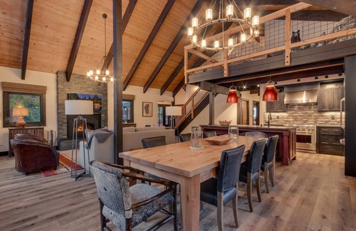 Tahoe Luxury Properties welcomes you! Bradley's Bungalow is the perfect retreat for you and your immediate family. This adorable Dollar Point vacation rental boasts a beautiful and spacious backyard, professional interior design, and an ideal location, just three miles from Tahoe City. The open floor plan naturally creates inclusive conversation and activity in the lower level. The gorgeous kitchen, with all new appliances, a large trestle dining table, and a living room with comfortable furnishings and a cozy, wood-burning fireplace are just a few of the highlights. The pine ceiling and hewn hickory floors are a warm compliment to the minimalist and modern touches throughout, while the local art gives you the feeling of being immersed in Lake Tahoe. Both adults and kids will appreciate access to their own private bedroom and bathroom, three of which have smart televisions. The loft serves as additional space to stretch out and enjoy reading, while not having to formally retire to a bedroom. In the summer, grill your shrimp kabobs and corn on the deck and enjoy your dinner al fresco. Your kids will enjoy the uncharacteristically large backyard and lawn area, perfect for tossing the frisbee or building a snowman. Relish relaxing in the bubbling hot tub at the conclusion of your activity-filled days.