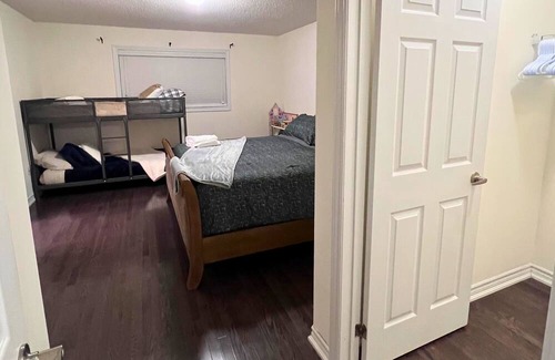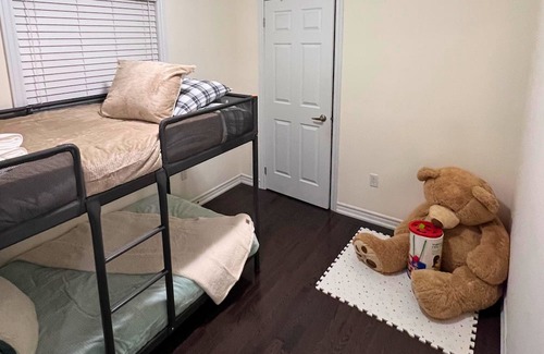Welcome to our family-friendly home, accommodating up to 10 guests! This cozy home boasts four tastefully furnished bedrooms: a master suite featuring a luxurious king bed, a convenient bunk bed, a walk-in closet, and a private ensuite bathroom; two additional bedrooms each with a comfortable queen bed; and a fourth bedroom with a charming bunk bed.