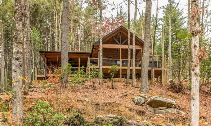 Forget your worries and escape to the mountains in our spacious and serene cabin tucked away in the Blue Ridge Mountains of North Georgia. Big Creek Cabin is a breathtaking newly constructed home featuring 2 bedrooms + 2 bathrooms with 2 queen sized beds, vaulted ceilings, and wrap around patio deck. It has has everything you need from a fully equipped kitchen with granite countertops, outdoor grill, work space, brand new furnishings, hot tub, fire pit, WiFi, washer, dryer, and more.