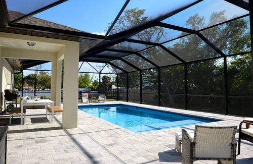 Welcome to The Grace Place! A beautiful new construction home completed in 2021, located in Fort Myers, FL. It's the perfect location to enjoy beaches, shopping, restaurants & more! Step into this very clean & bright, open floor plan home featuring 4 bedrooms (sleeping 8), 2 full bathrooms, stocked kitchen, washer/dryer & an outdoor grill. Relax outside in the heated pool with a tanning ledge surrounded by a screen enclosure, or enjoy dinner on the large patio surrounding the pool!