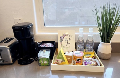 One bedroom/one bath mother-in-law suite equipped and furnished with luxurious quartz countertop, brand new appliances, washer/dryer, fully stock amenity, dedicated workstation, La-Z-Boy recliner and one car garage attached!