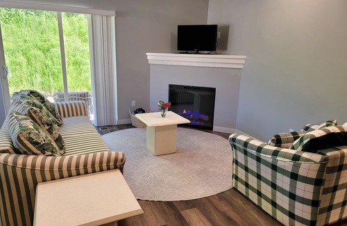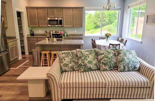 Ocean Highlands Hideaway is bright and welcoming with a comfortable living room and propane fireplace. There is a flatscreen "Smart" TV for quiet evenings at home, and the open and fully stocked kitchen is both lovely and functional offering stainless steel appliances, an island, and a dishwasher for easy clean up.