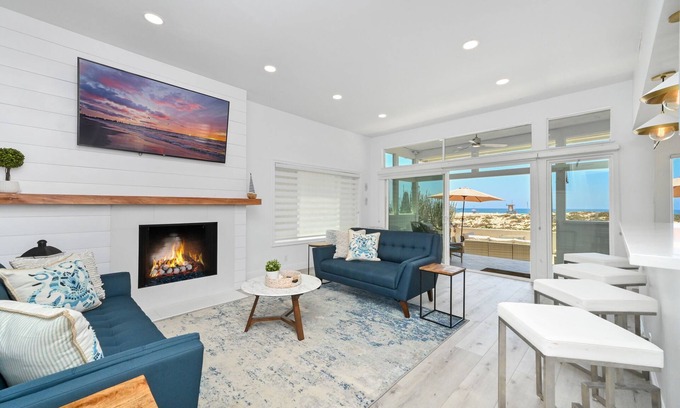 This home is beautifully remodeled and equipped with everything you need to enjoy your beach vacation. The lower level has direct access to the oceanfront patio equipped with a 6 seat patio table for family dinners and an outdoor sofa/patio lounge with a propane fire pit for the cool afternoons spent enjoying one of our many beautiful California Sunset.