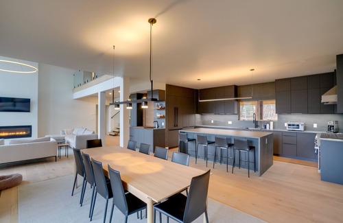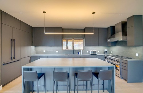 CHEF’S KITCHEN: Well-equipped w/ Viking appliances, fridge, 8-burner stove, double oven, 24" dishwashers (2), microwave, toaster oven, coffee bar w/ Nespresso coffee maker, drip coffee maker, blender, waffle maker, cooking basics, dishware & flatware, trash bags, paper towels, wine fridge, porcelain countertops, Leicht brand
