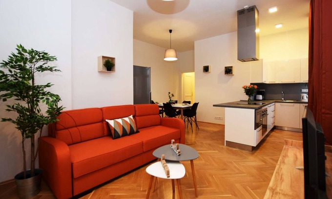 Bright brand-new apartment centrally situated in one of the most famous Prague's neighborhoods. There are many shops, bars, caf����s and restaurants around, so you will find everything what you need.