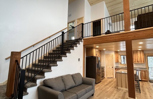 • Open loft with full size pull out sleeper sofa, 55-inch smart TV, and views of the Tetons.