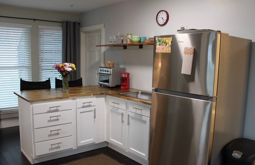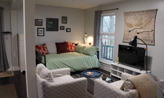 Quiet neighboorhood in a cul-de-sac. Surrounded by beautiful hardwood trees. Within 10 minute drive to downtown Chattanooga. Studio has a separate entrance and on street parking. Blackout curtains for the late shift professional. Smat TV, cooktop, toaster-air fryer, coffee maker and all necessary linens. Washer-dryer, ironing board and a double day bed with a trundle bed.