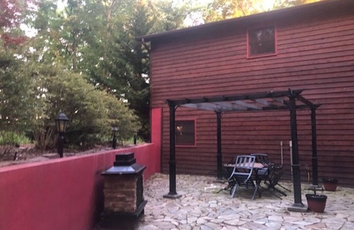 Located in a mountain/river neighborhood with paved roads. Enjoy the fire pit and patio with woodburning fireplace. Separate from the main house, you will have complete privacy. It's fully equipped including a microwave, coffeemaker, toaster, fridge, Electric Frying Pan, and a large air fryer which also bakes & roasts. There’s a TV with sound system and gas fireplace for those chilly nights.