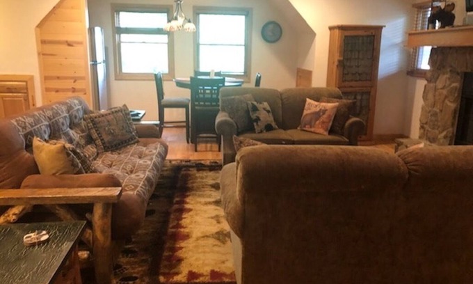 This retreat makes the perfect place to "hang your hat" as you explore the mountains. Perfect for couples, a small family or those traveling solo, it features one bedroom, one bathroom, a great room with fireplace, and kitchenette/dining area. There is a futon that sleeps 2 as well